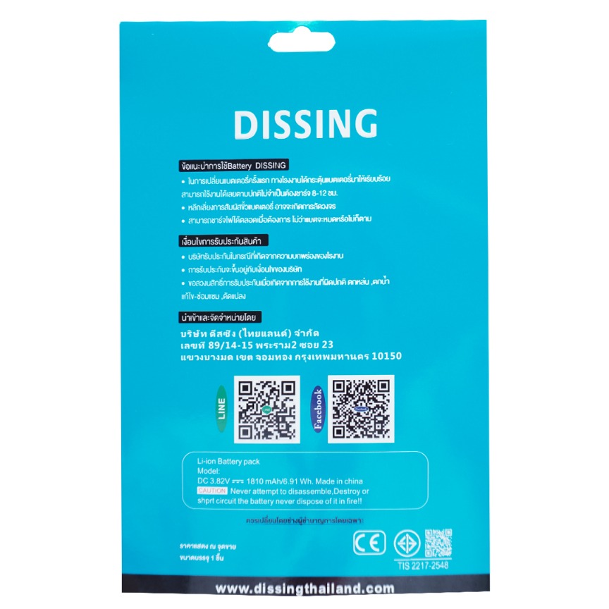 5. ประกันแบตเตอรี่ 1 ปีจะมีสำหรับแบตเตอรี่ Dissing ทุกก้อน แบตเตอรี่ที่สั่งซื้อผ่าน