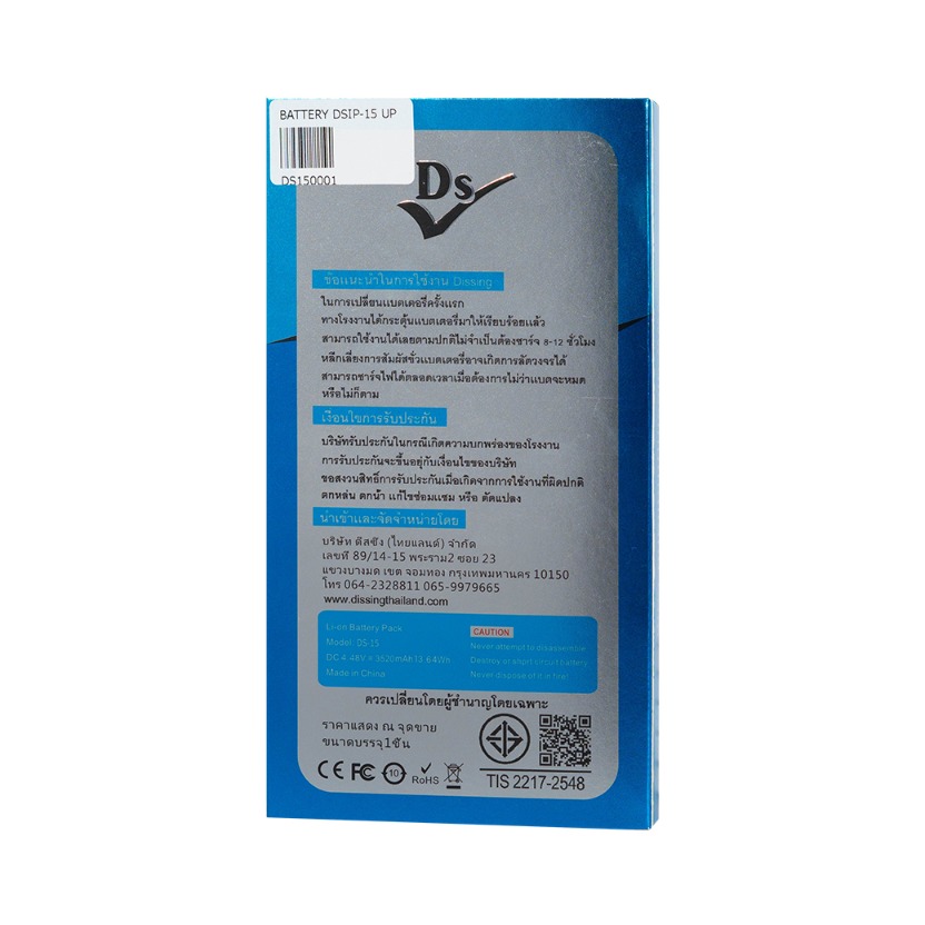5. ประกันแบตเตอรี่ 1 ปีจะมีสำหรับแบตเตอรี่ Dissing ทุกก้อน แบตเตอรี่ที่สั่งซื้อผ่าน